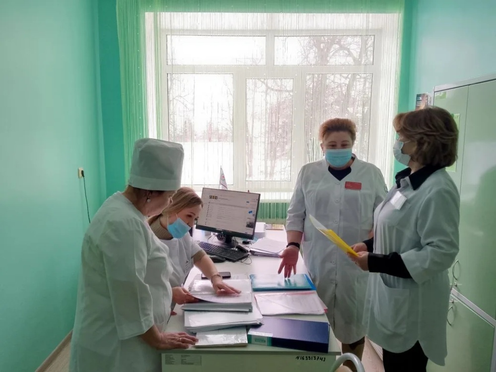 Главная медицинская сестра Раевской ЦРБ Елена Викторовна Радченко, врач-эпидемиолог Регина Владимировна Зиангирова, старшая медсестра поликлиники Рита Тимергазиевна Юнусова и старший фельдшер организационно-методического кабинета Шавалеева Регина Исламуратовна познакомились с организацией работы своих коллег.