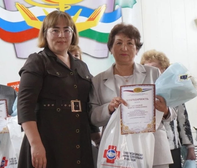 Особые поздравления Фанузе Гирфановне! Ей было вручено Благодарственное письмо за вклад в развитие сестринского дела и воспитание будущих кадров. 31 год в должности главной медицинской сестры - это опыт и бесценное достояние, на котором выросли целые поколения медсестер Альшеевского района.