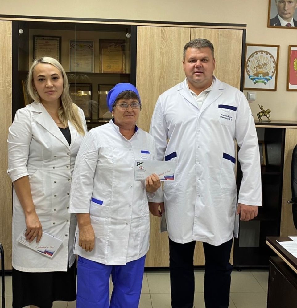 Совместно с председателем профкома больницы Венерой Мулюковой поздравили юбиляров и вручили им памятные конверты.