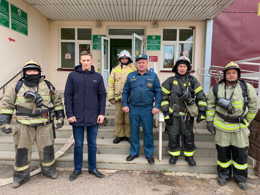 В Раевской ЦРБ сегодня прошла важная учебная тренировка по пожарной безопасности с участием дежурной группы ПЧ-62 с. Раевский.
